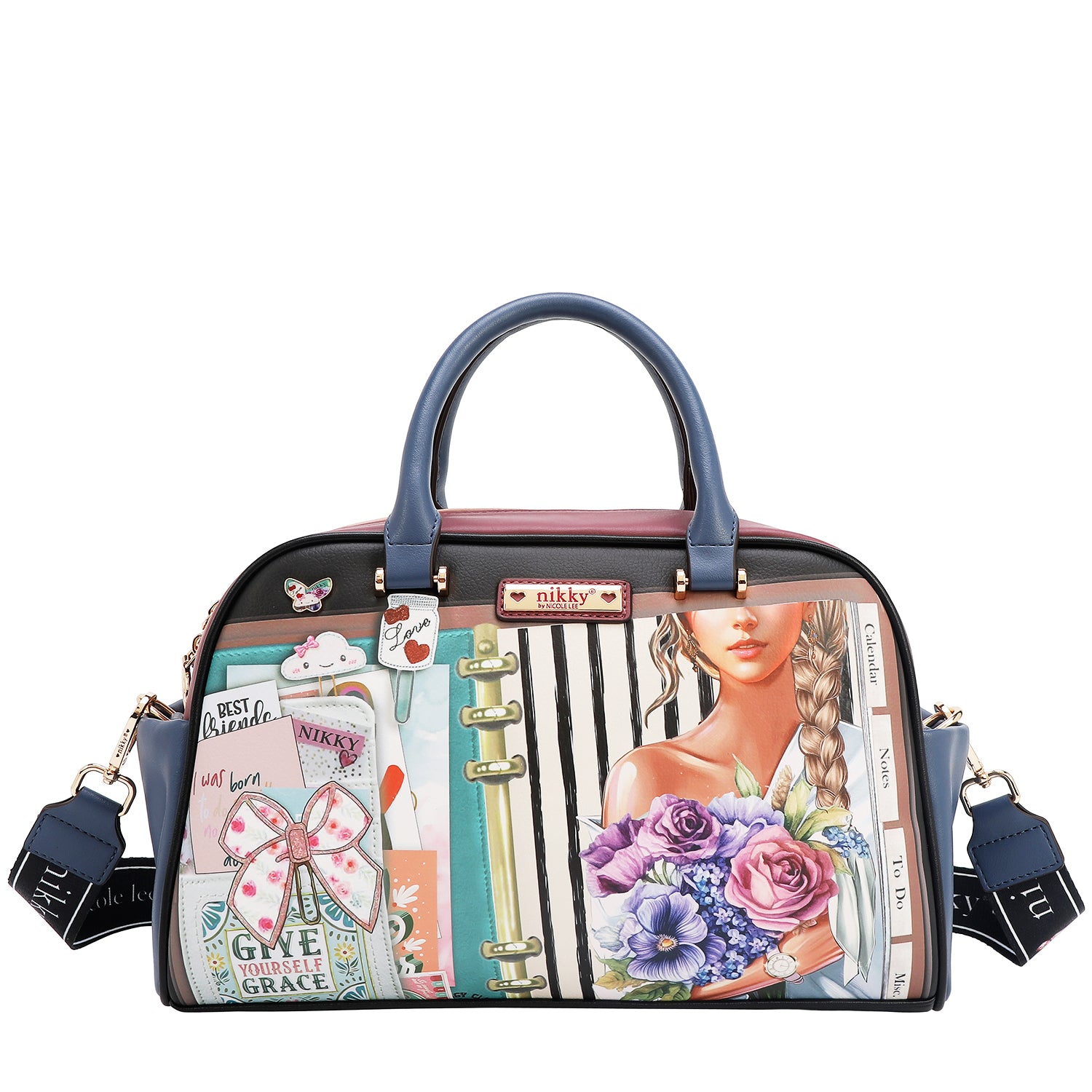 BOLSA ESTAMPADA BOSTON CON DOBLE ASA Y CORREA DE TELA NOSTALGIA