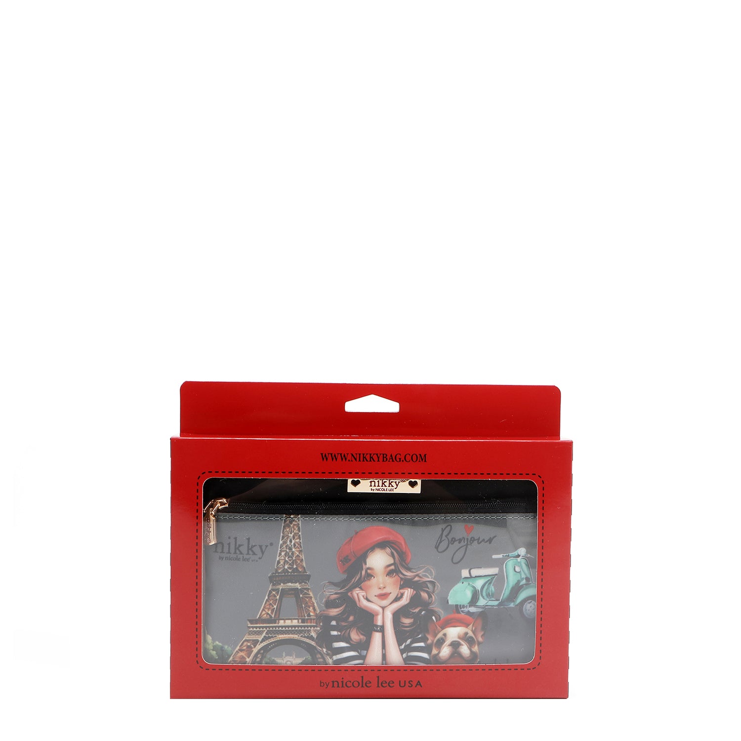 Precio habitual $ 370.00CARTERA ESTAMPADA FLEXIBLE DE DOBLE CIERRE Y MUÑEQUERA EIFFEL DREAMS