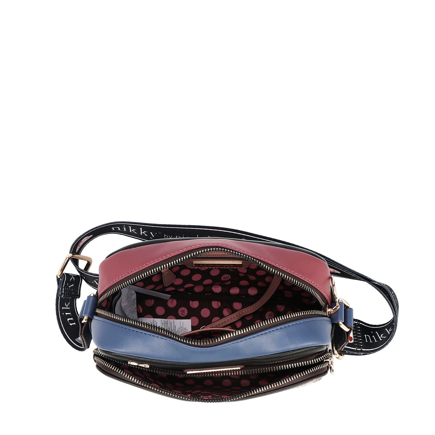 BOLSA ESTAMPADA CRUZADA, CIERRE AL FRENTE Y CORREA DE TELA NOSTALGIA