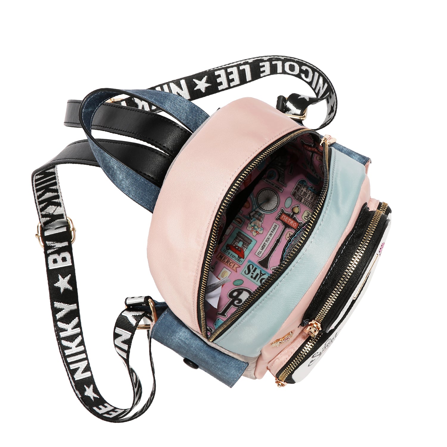 MOCHILA MEDIANA ESTAMPADA CON COMPARTIMENTOS AL FRENTE Y CORREAS AJUSTABLES SWEET GIRL