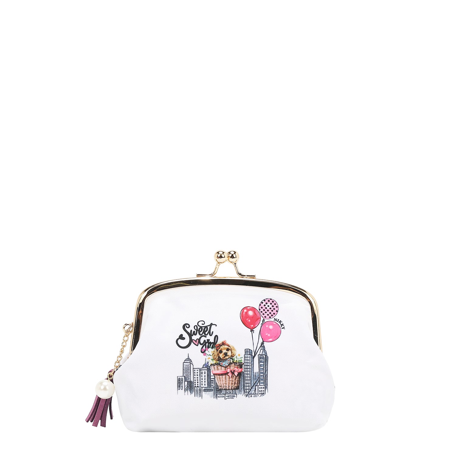 Precio habitual $ 480.00MONEDERO ESTAMPADO CON DOBLE COMPARTIMENTO, BROCHE KISS LOCK Y COLGUIJE SWEET GIRL
