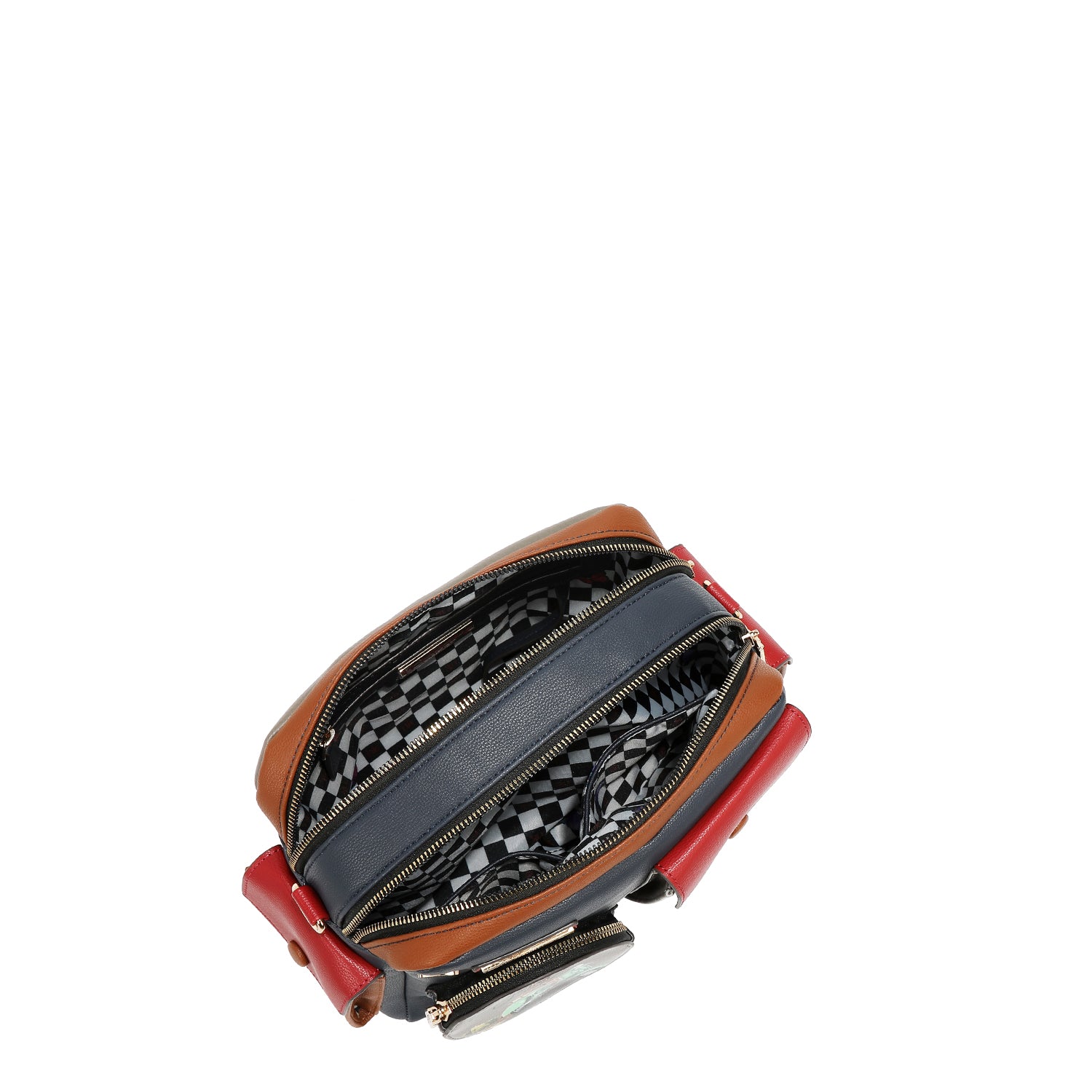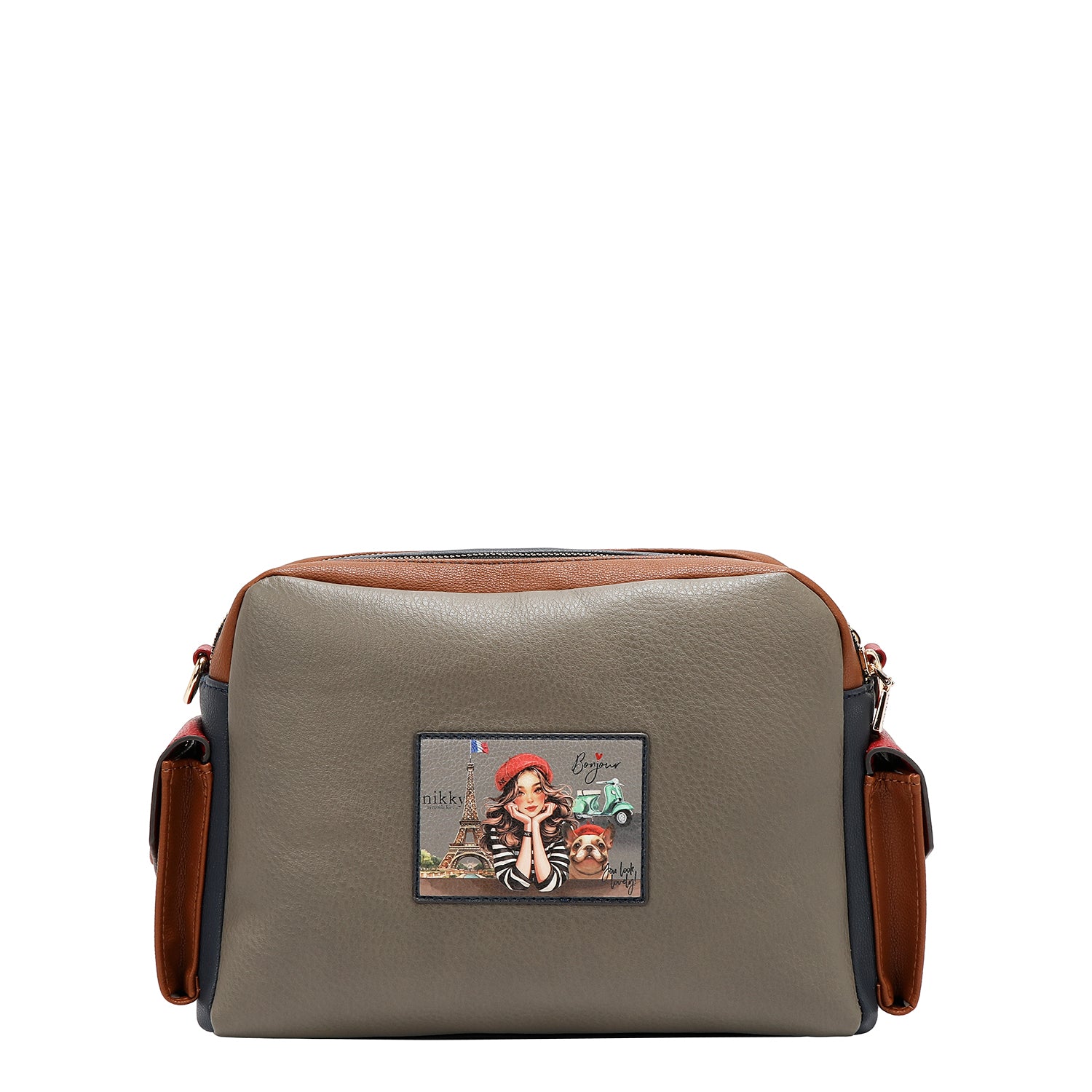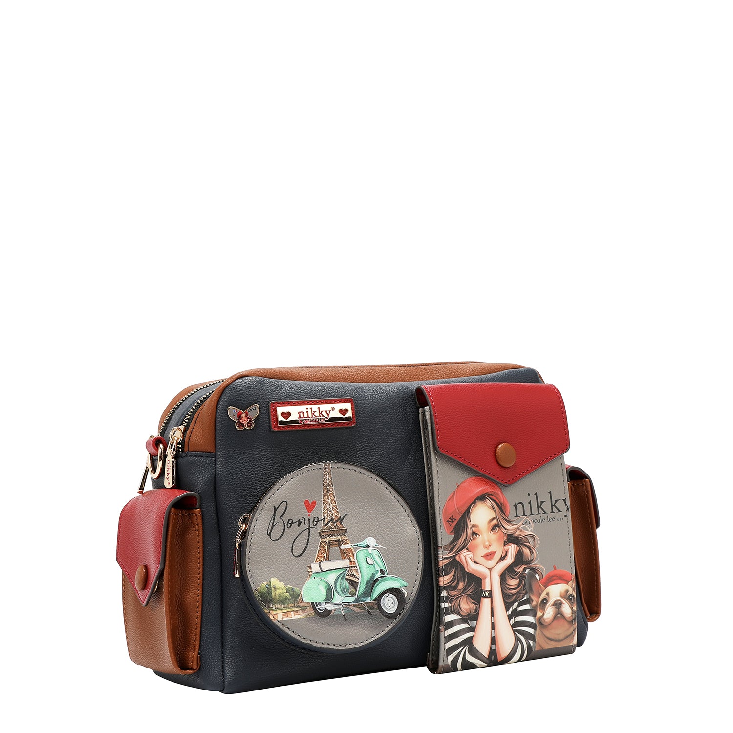 Precio habitual $ 1,290.00BOLSA CRUZADA ESTAMPADA CON COMPARTIMENTOS AL FRENTE Y CORREA DE TELA EIFFEL DREAMS