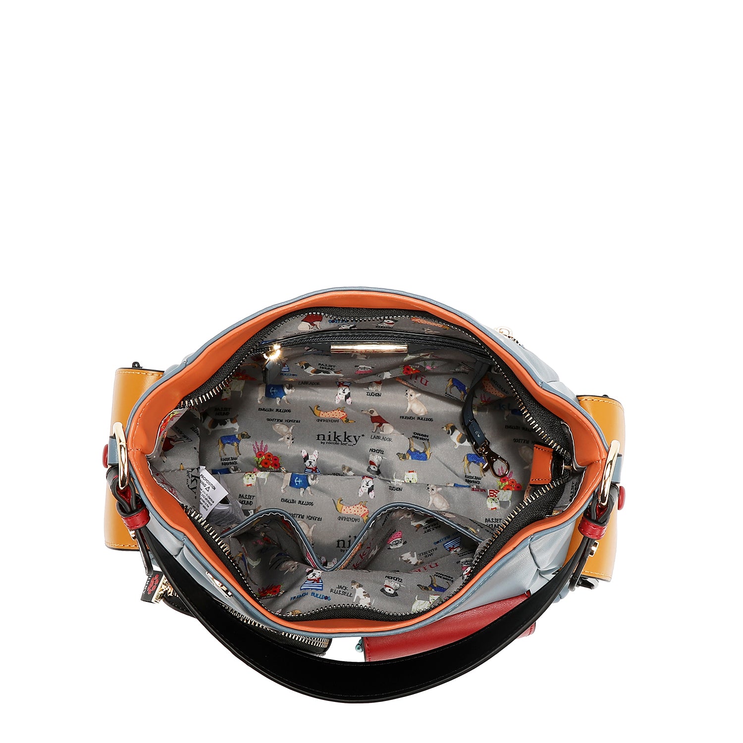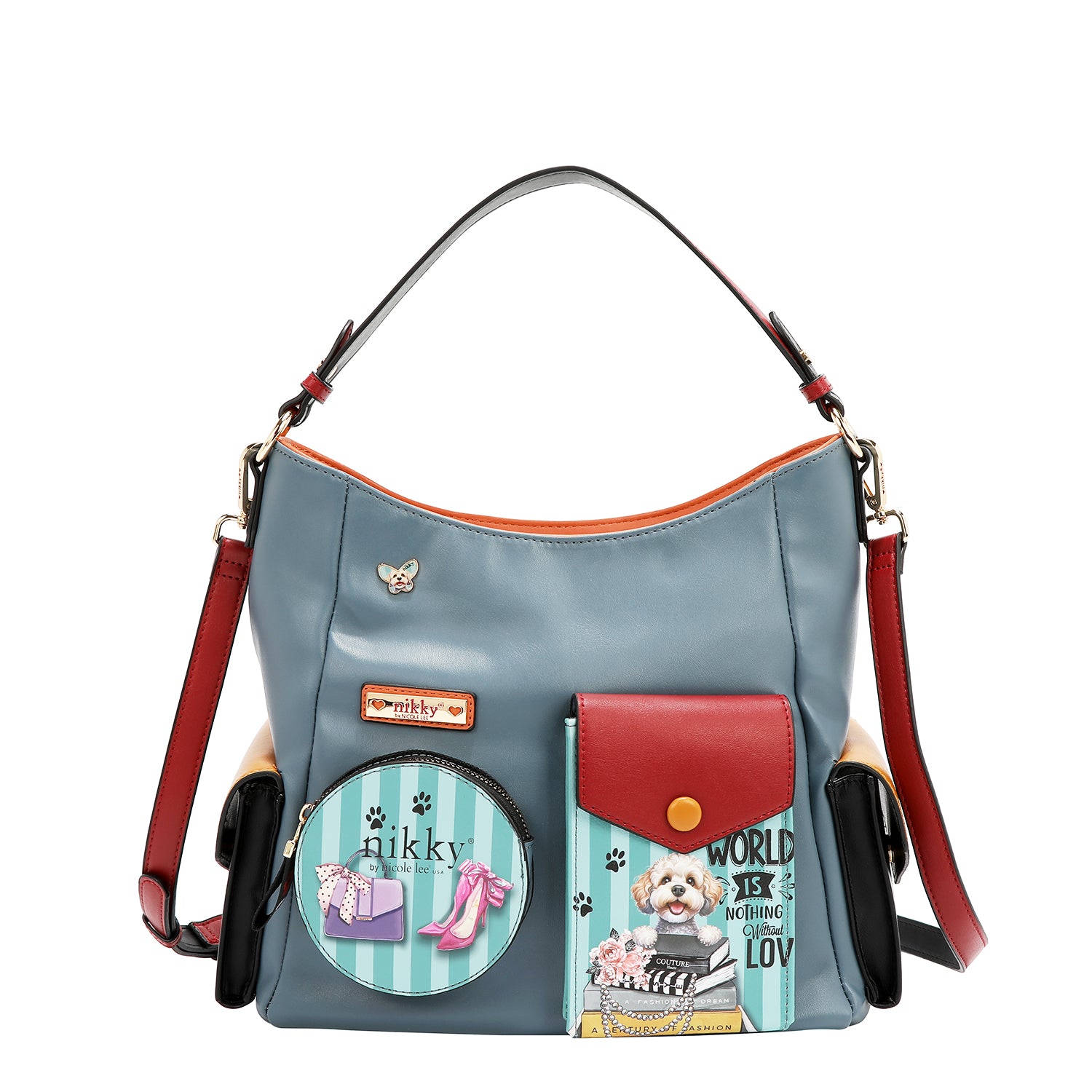 BOLSA HOBO ESTAMPADA CON COMPARTIMENTOS AL FRENTE Y CORREA AJUSTABLE MEANT TO LOVE YOU